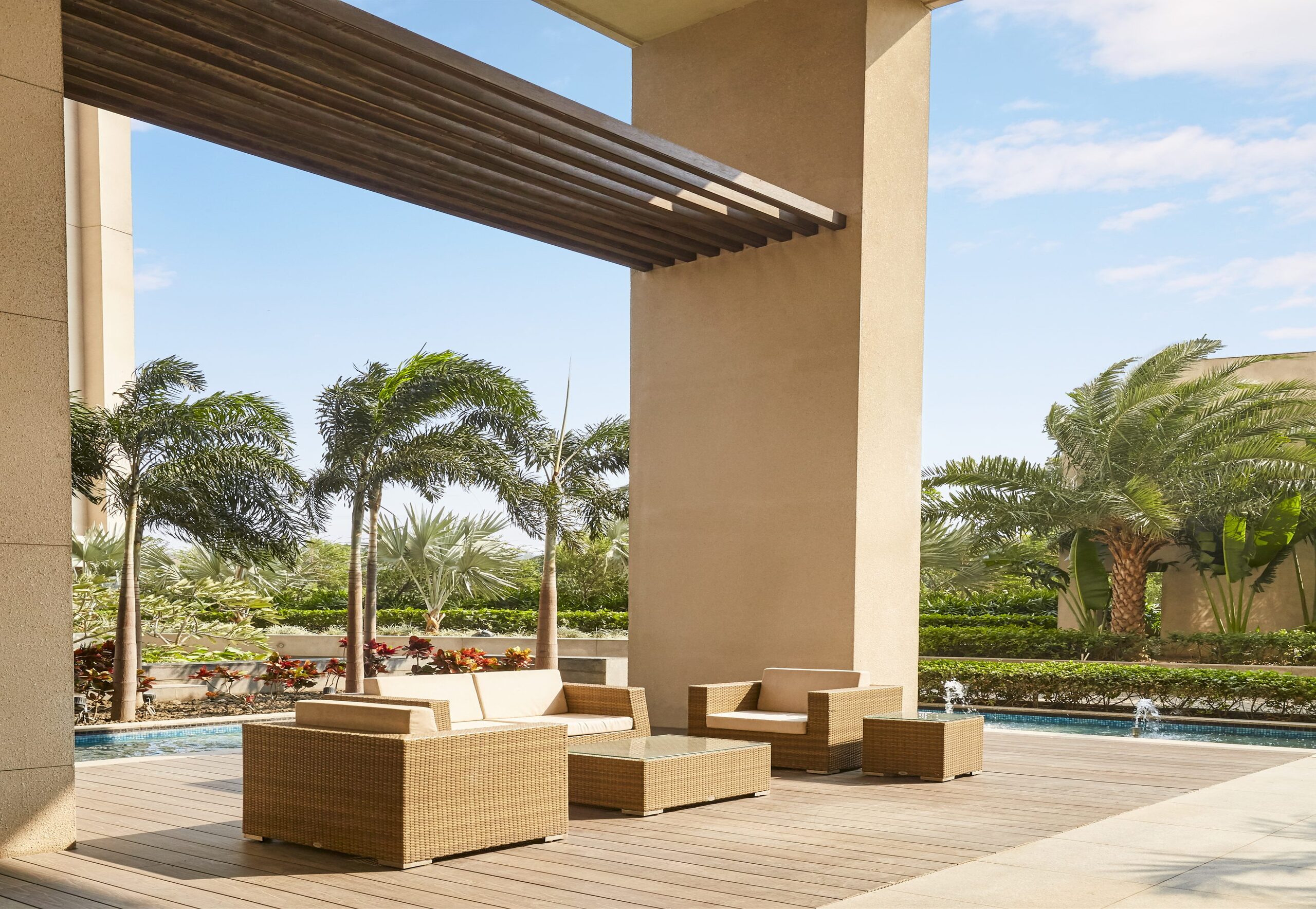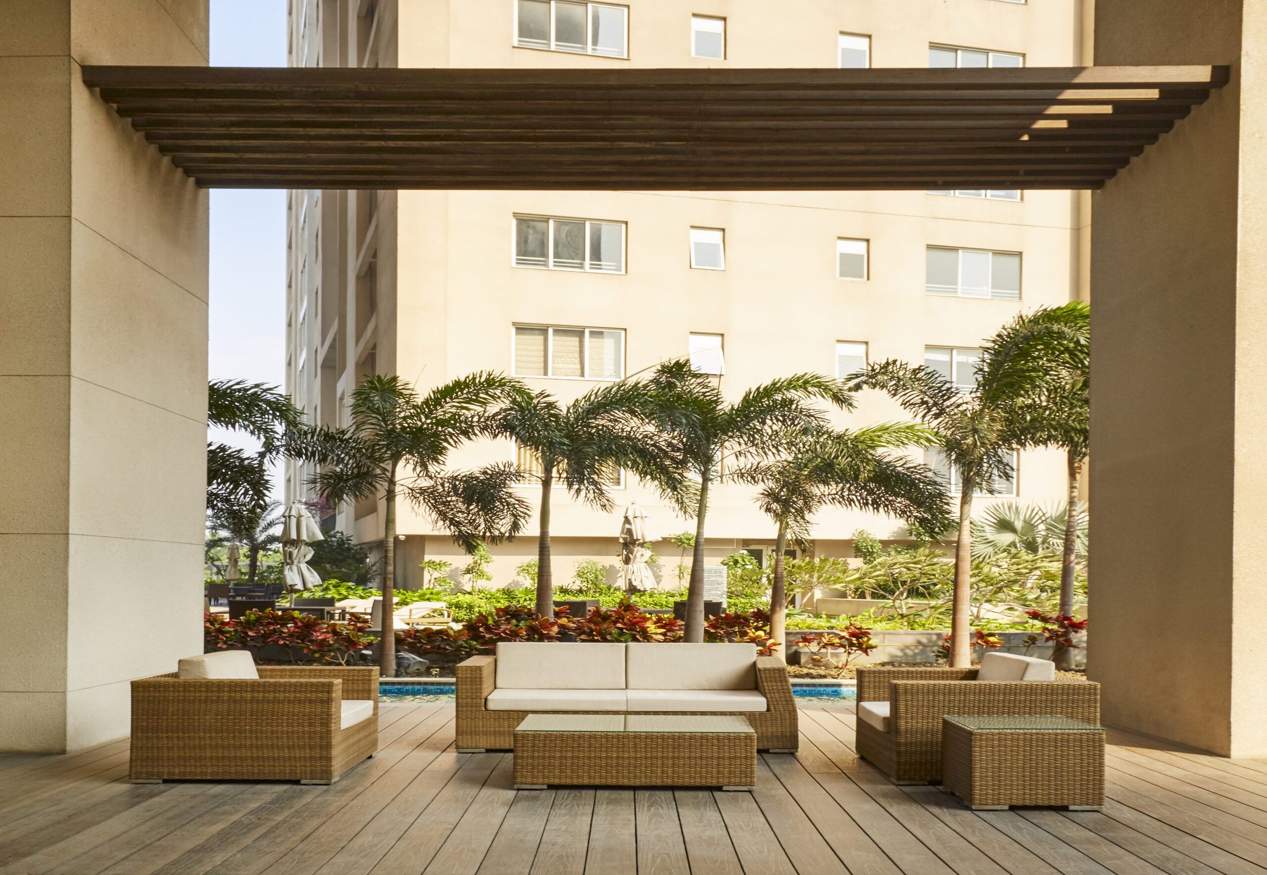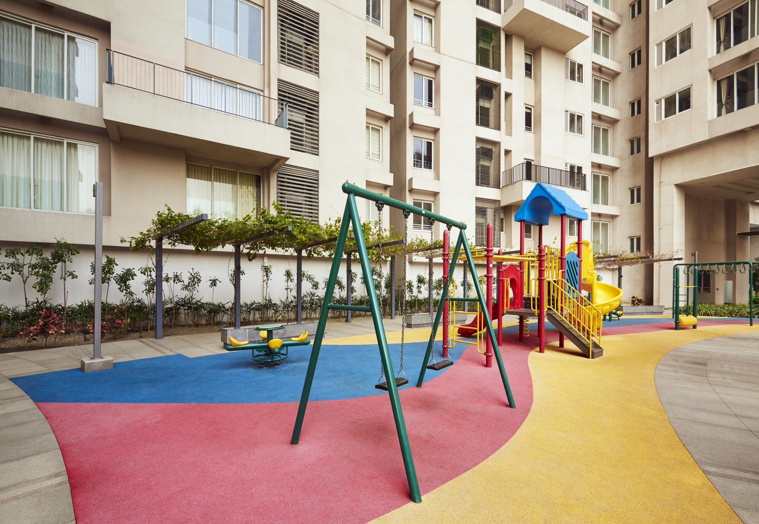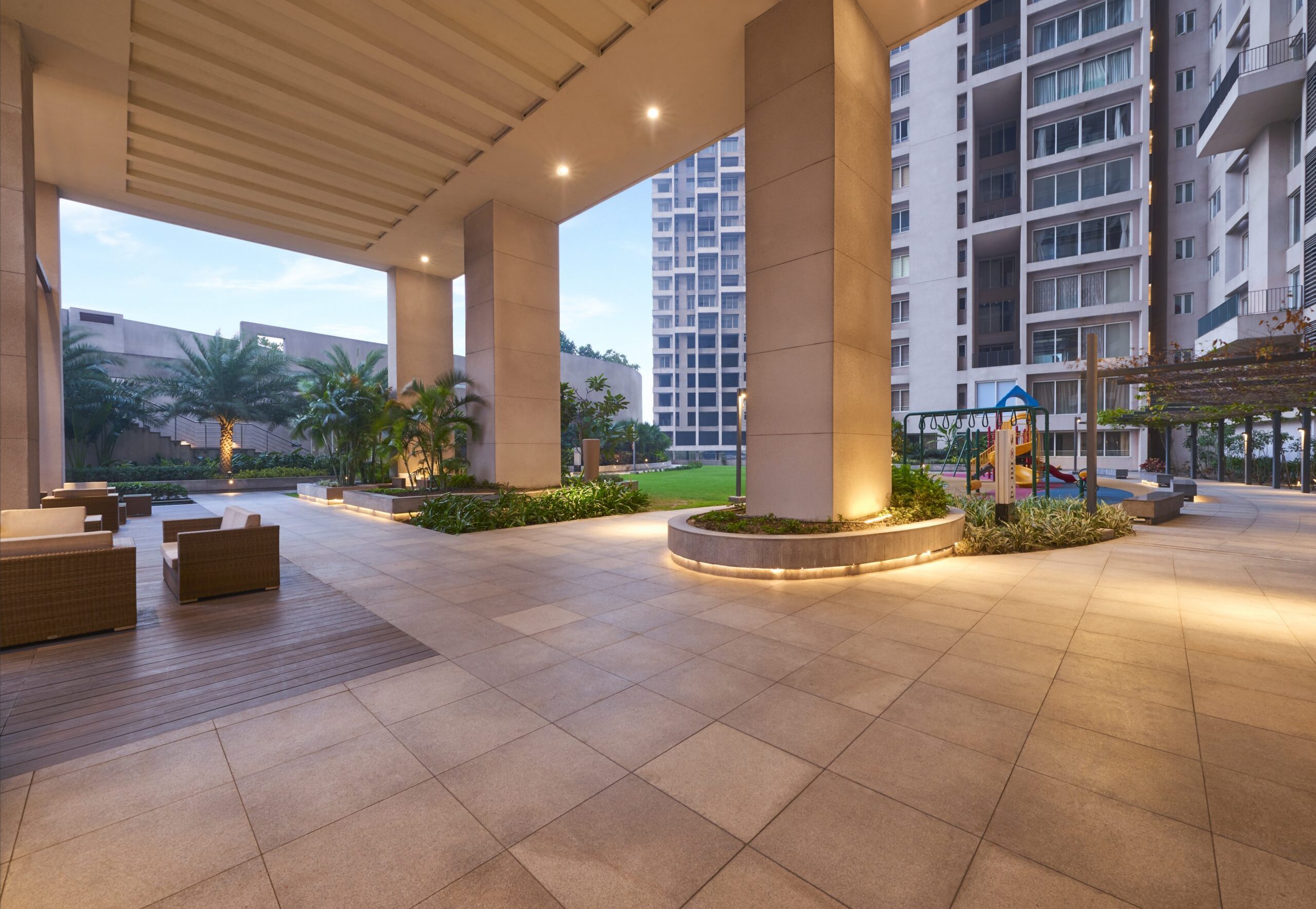 As you enter Swarnamani, the feeling of paradise certainly sweeps over. Swarnamani is adorned with carefully chosen trees like Plumeria Alba, FicusLyrata, ChorisiaSpeciosa, Strelitzia, PlumbagoCapensis that cover 65% open spaces. From landscaped gardens to covered pathways, water features and sitting areas ornamented by Nature, the greenery is not just pleasing to the eye, but transforms the place into an independent biosphere within itself.